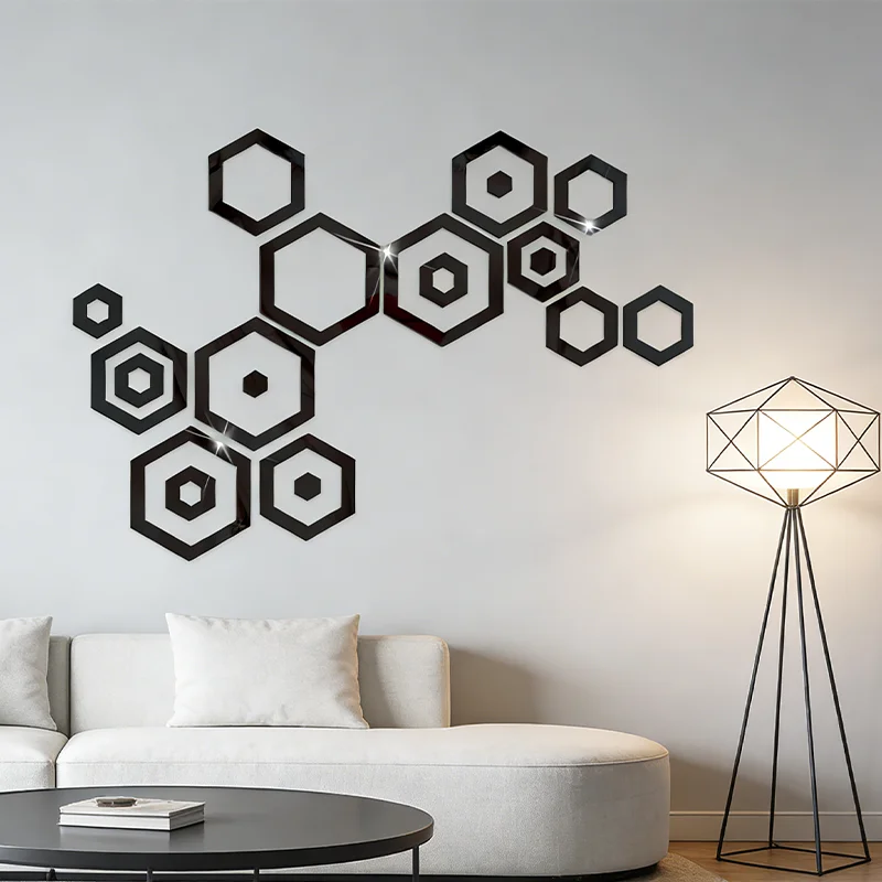 This hollow hexagonal wall sticker set is a simple way to upgrade any room with a modern geometric style. It includes multiple pieces that can be arranged in creative patterns to suit your space. The self-adhesive backing allows for easy application without the need for tools or glue. Each sticker is designed to be peelable and repositionable for flexible decorating. The hollow hexagon design adds depth and a stylish visual effect to plain walls. It is suitable for living rooms, bedrooms, and study areas. The lightweight material makes installation quick and hassle-free. It can be used to create feature walls or subtle decorative accents. The minimalist shape blends well with modern and contemporary interiors. This wall sticker set is an easy and affordable way to refresh your home décor.